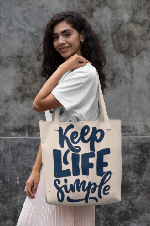 Canvas Shopping Tote Bag - Printed Words (LIFE SIMPLE)